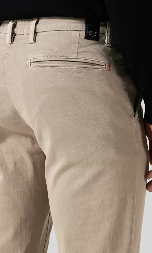Benni Hyperflex Chino från Replay kombinerar stil med komfort tack vare sin stretchiga hyperflex-kvalitet. Byxorna sitter perfekt och anpassar sig efter kroppen för en modern, avslappnad look. Passar lika bra med t-shirt och sweatshirt som med skjorta för både vardag och mer uppklädda tillfällen.
