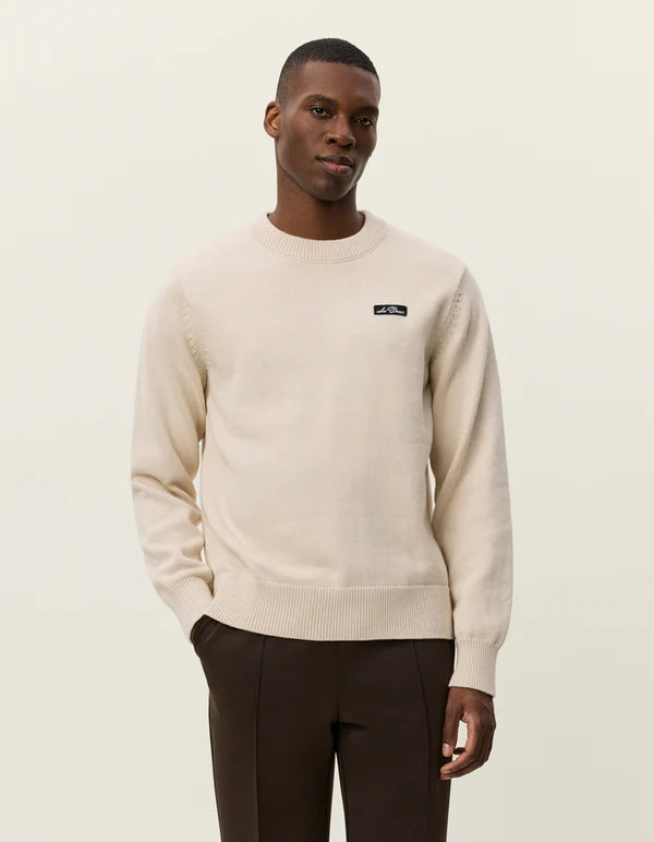 Gary Patch Crewneck Knit är en minimalistisk tröja i finstickad bomull, perfekt för lager-på-lager och vardagligt bruk. Den har en diskret logotyp i skrivstil på bröstet som ger en stilren detalj.