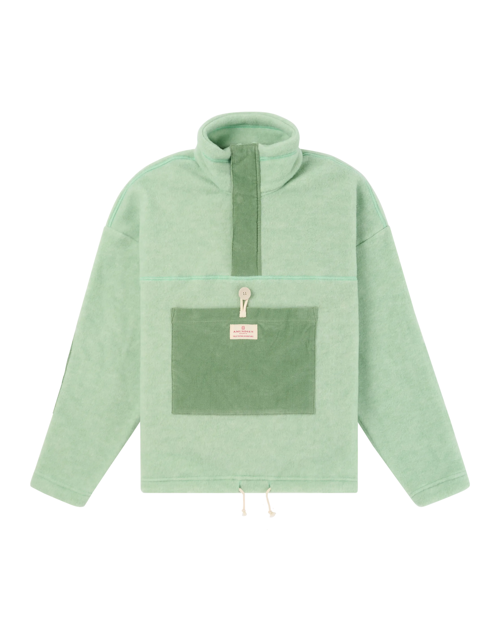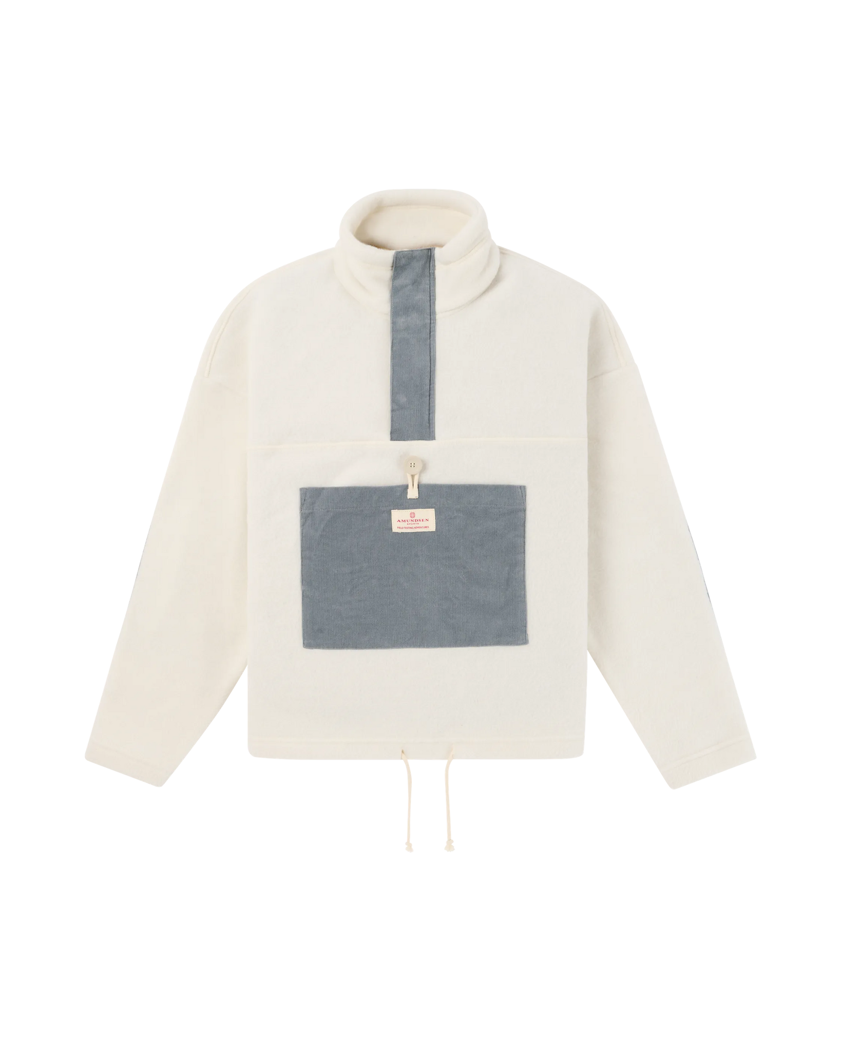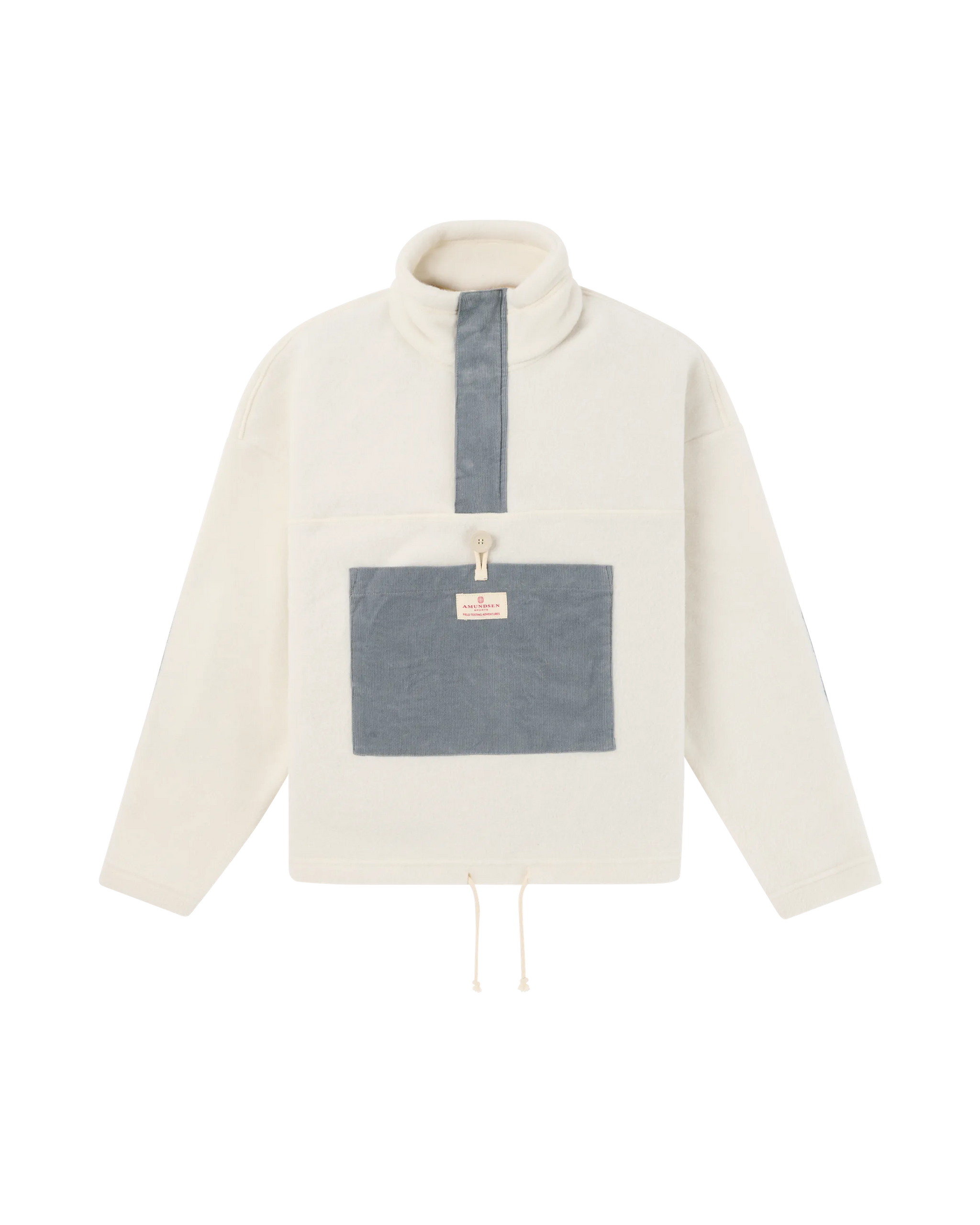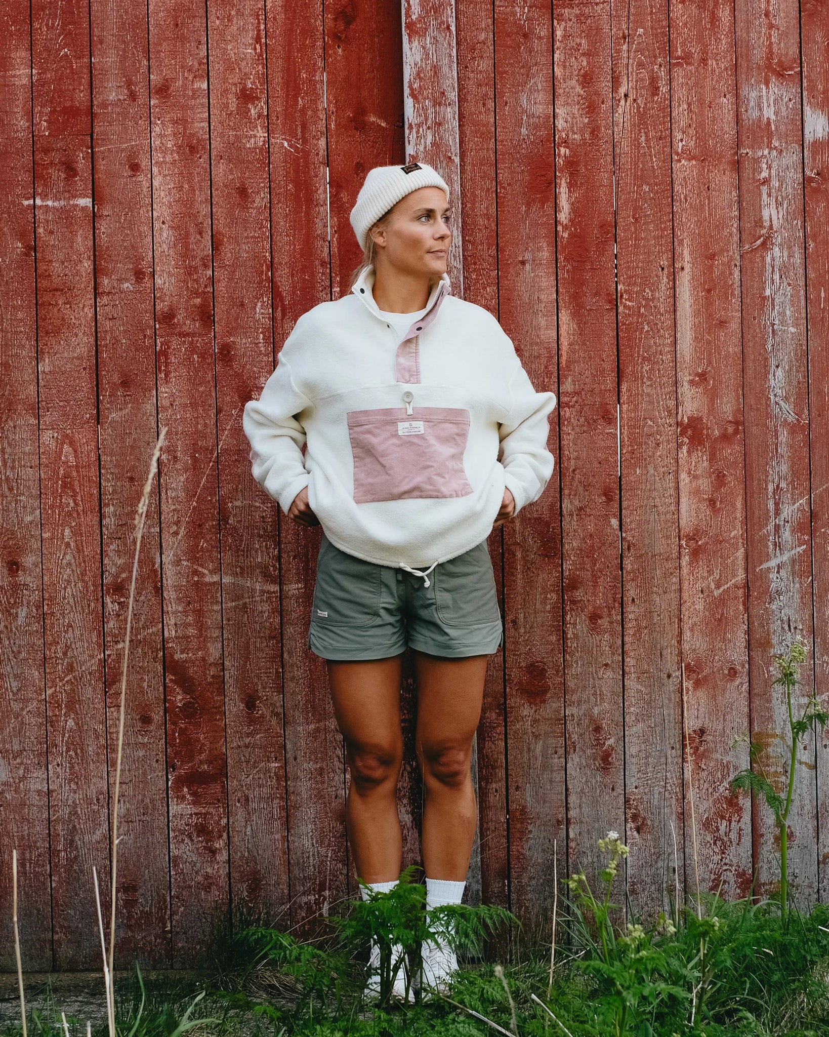 Denna fleece är tillverkad av italiensk fleece och fransk corduroy och är din mjukaste följeslagare under vårens långa dagar och svala nätter. Denna fleecetröja har Amundsens signaturbröstficka som ger enkel åtkomst till verktyg och andra viktiga saker. Påsydda fickor som dessa är inspirerade av Roald Amundsens design.